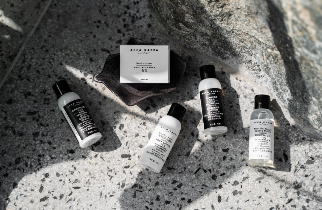 当然来这的最大目的还是泡汤了!每个房间都有独立的私汤泡池,备品用的是AA级的ACCAKAPPA洗浴套装,品味不错。