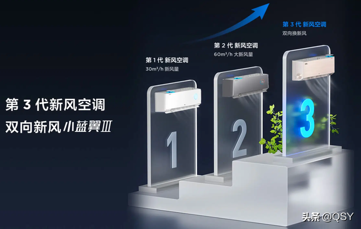 2021年,TCL空调发布“小蓝翼”系列新风空调,到目前为止,“小蓝翼”系列的1.5匹新风挂机已经升级到第三代: