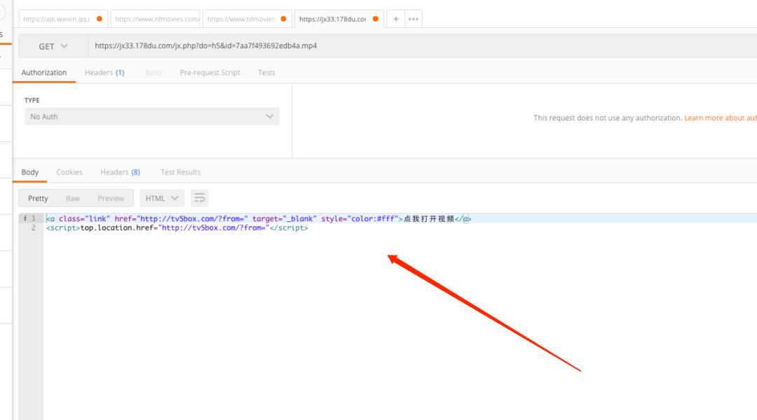 接口参数抓到了就开始拿到我们需要的video路径。我们请求接口的参数返回的是html代码块。