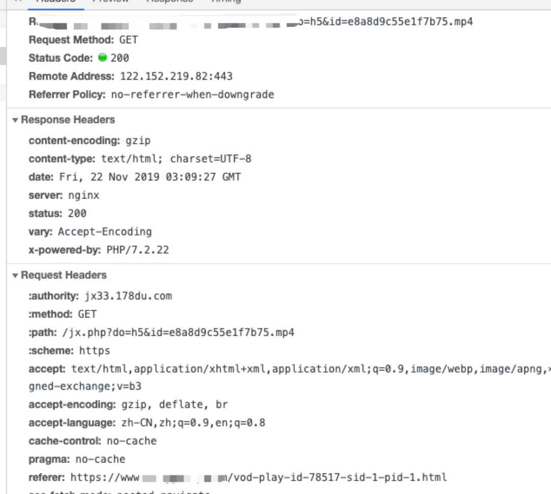 /*****@Paramnull*@Author:tianminghai*@Date:5:28PM2019/11/15*/publicstaticStringgetVideoUrlForFengGou(StringapiUrl,Stringrefeurl)throwsException{//参数详情";id=7";refeurl="";Documenthtml=null;try{html=(apiUrl).header("referer",refeurl).get();}catch(IOExceptione){throwe;}StringvideoUrl=getHtmlVideoStr(()).get("src");("------原始数据:"+getHtmlVideoStr(()));if(("")){returnvideoUrl;}else{thrownewException("数据解析问题");}}
