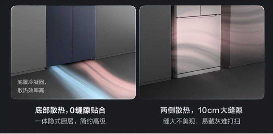 无论购买哪种家电,安全问题都是重中之重。普通冰箱多为两侧散热,所以很难做到严丝合缝,需要预留足够的空间解决安全问题。TCL薄嵌冰箱T9在散热方面也做出了新的改变,将冷凝器安装在底部,安全散热的同时不影响零缝隙贴合。