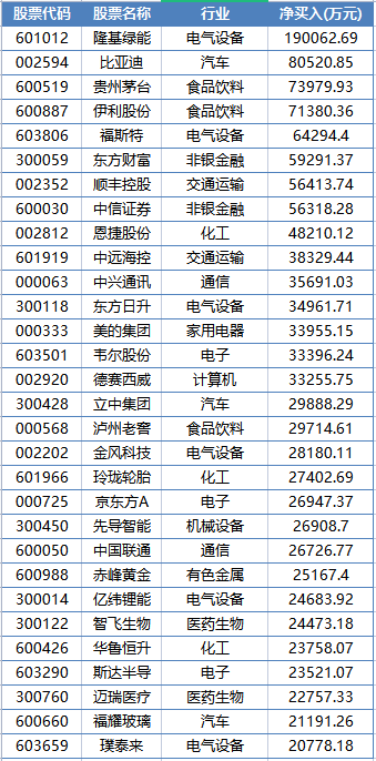 另外,福耀玻璃、拓普集团、均胜电子、中鼎股份等本周也获得北上资金超亿元的净买入。