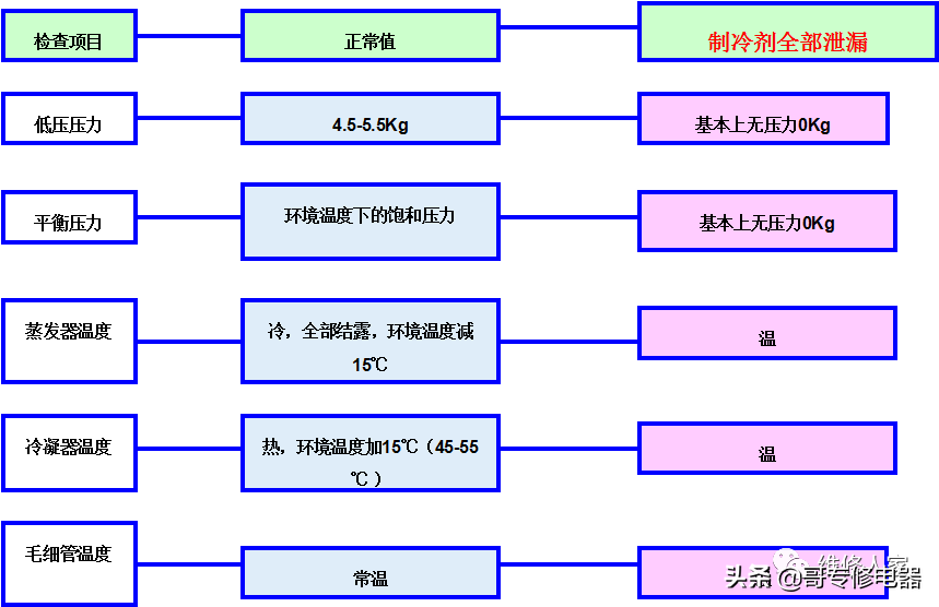 下面列举了制冷时常见的故障现象,及其故障原因排查分析方法: