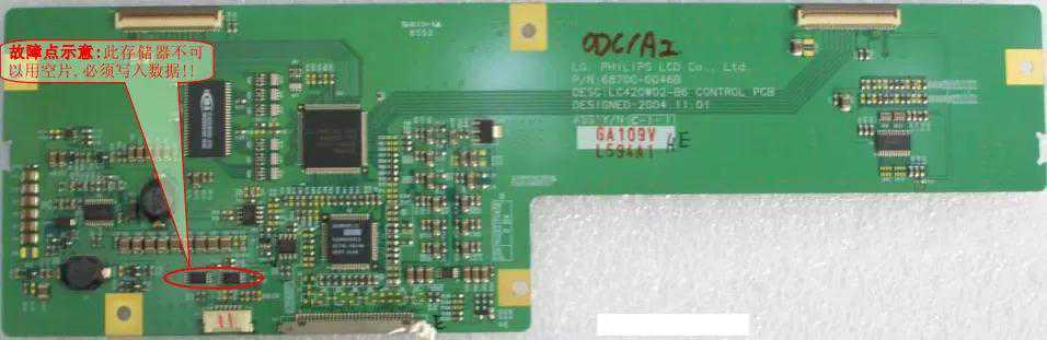 4、芯片本身。据此分析后,首先关掉对比度,此时图像基本正常,至此可以确定故障出在逻辑板上.经检测屏供电及芯片供电均正常.故障现象也表明格式变换器与帧存储器通讯不正常的问题也可以排除,那么就只有屏存储器数据损坏导致屏驱动异常引起的这个故障了.重新写入数据后图像恢复正常显示。
