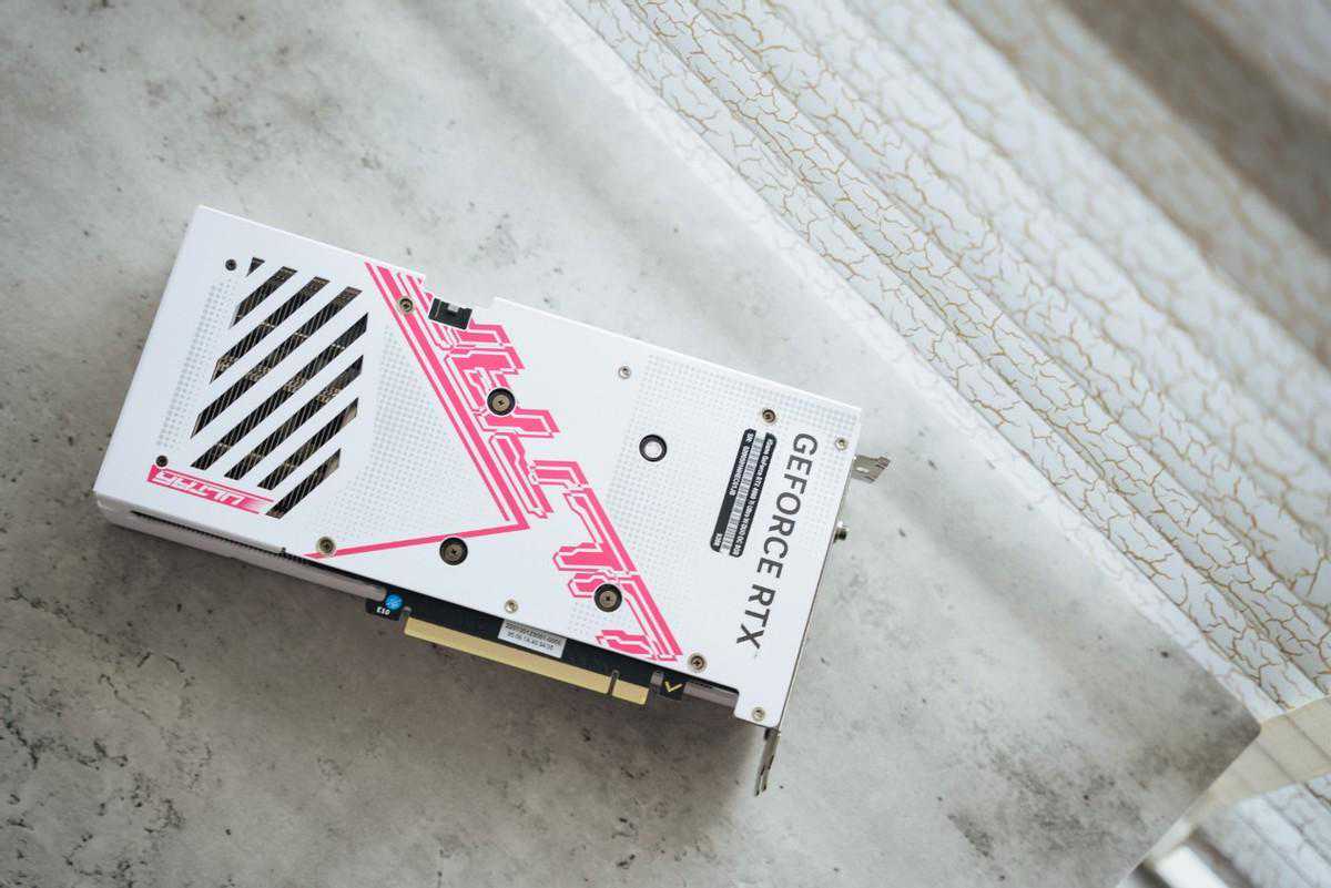 另外波普风格也延续到了iGameRTX4060TiUltraWDUOOC8GB的金属背板中,粉色的Ultra字体有不错的时尚感,也与顶端侧灯相互呼应。同时也可以看到背板使用了开孔设计,更便于风道流通。