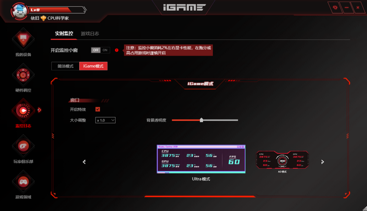 顺带一提,侧灯的RGB控制同样由iGameCenter来完成,这套控制软件目前已经发展到全能的系统监控、超频、RGB调整,甚至还带有游戏帧数预判和社交属性,进一步帮助iGameRTX4060TiUltraWDUOOC8GB获得了更多体验。