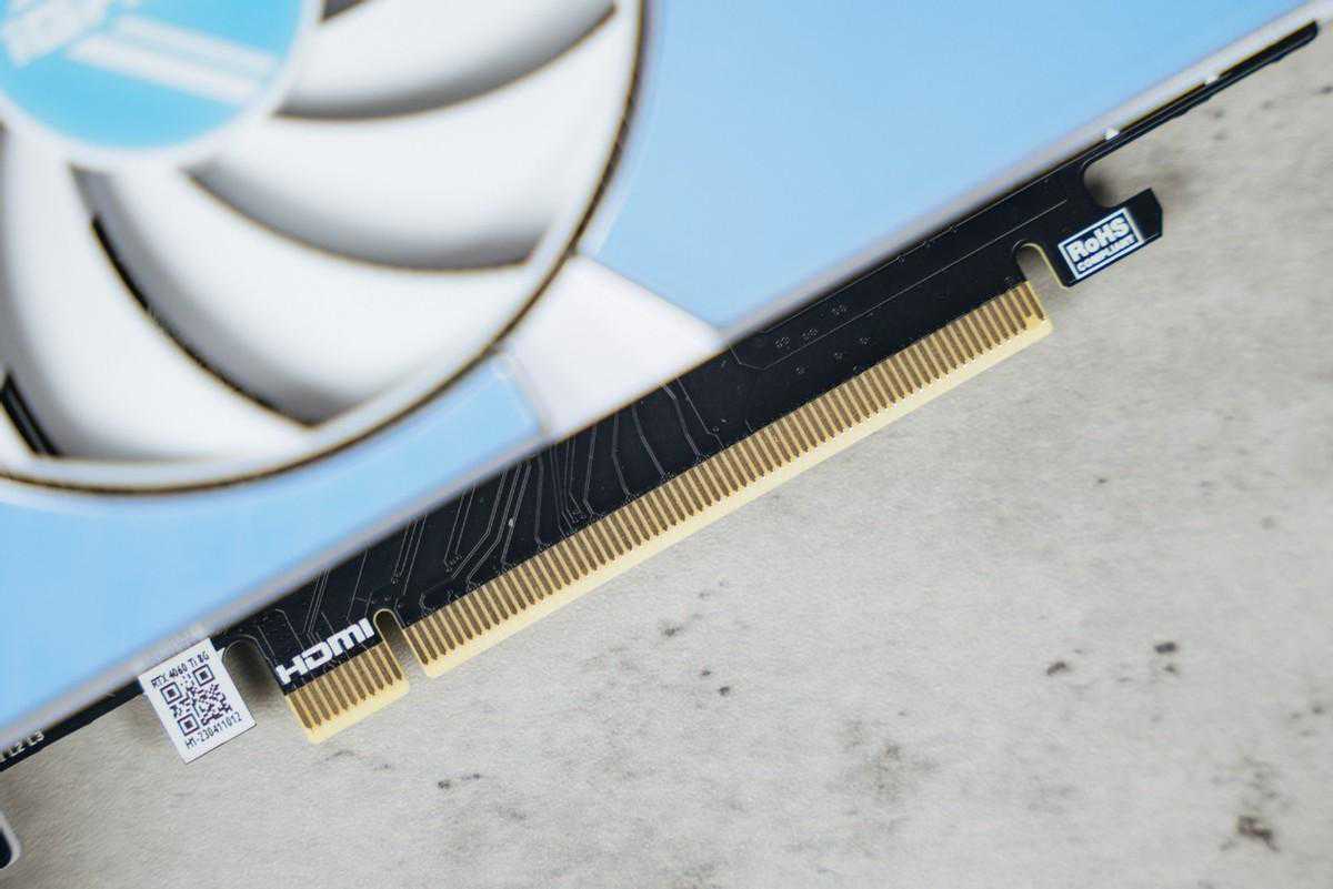 需要注意的是,iGameRTX4060TiUltraWDUOOC8GB使用了通道,而非x16,在实际测试中不会影响GPU的性能发挥,反倒可以节省主板PCIe通道留给进行扩展。但x8通道毕竟是在物理上的缩减,我们从显卡针脚设计上可以看到后半部分是没有电路的。因此iGameRTX4060TiUltraWDUOOC8GB能够在和插槽中充分发挥性能,而如果用在上,性能肯定是有折扣的。因此现在还在用主板的同学,可以考虑连电脑一起升级了。