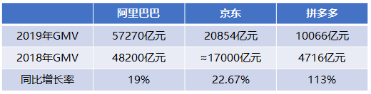 三家电商平台2019年GMV对比