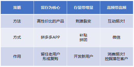 当人们都以为拼多多是补贴羊毛薅出来的体量时,其实它已经拥有了一套完整的流量运营方法:基于社交和补贴下沉人群引流,基于算法推荐加高性价比产品组合形成增长黑客,基于用户价值高精度分层运维。这些都将逐渐反映在人均GMV的增长和更高的广告货币化率上。