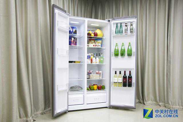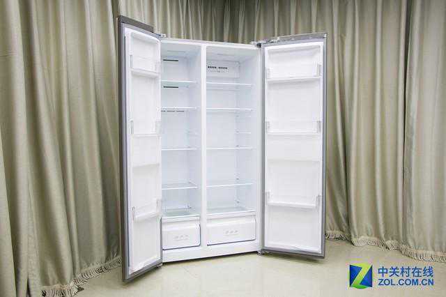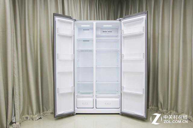 这款冰箱的总容积为520L,整体结构为对开门式,冰箱的右侧为冷藏室,容积334L,冰箱的左侧为冷冻室,容积为186L。