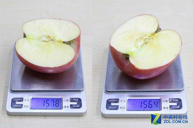 切半苹果的重量由157.8g减轻至156.5g,水分流失1.3g,失水率为0.82%