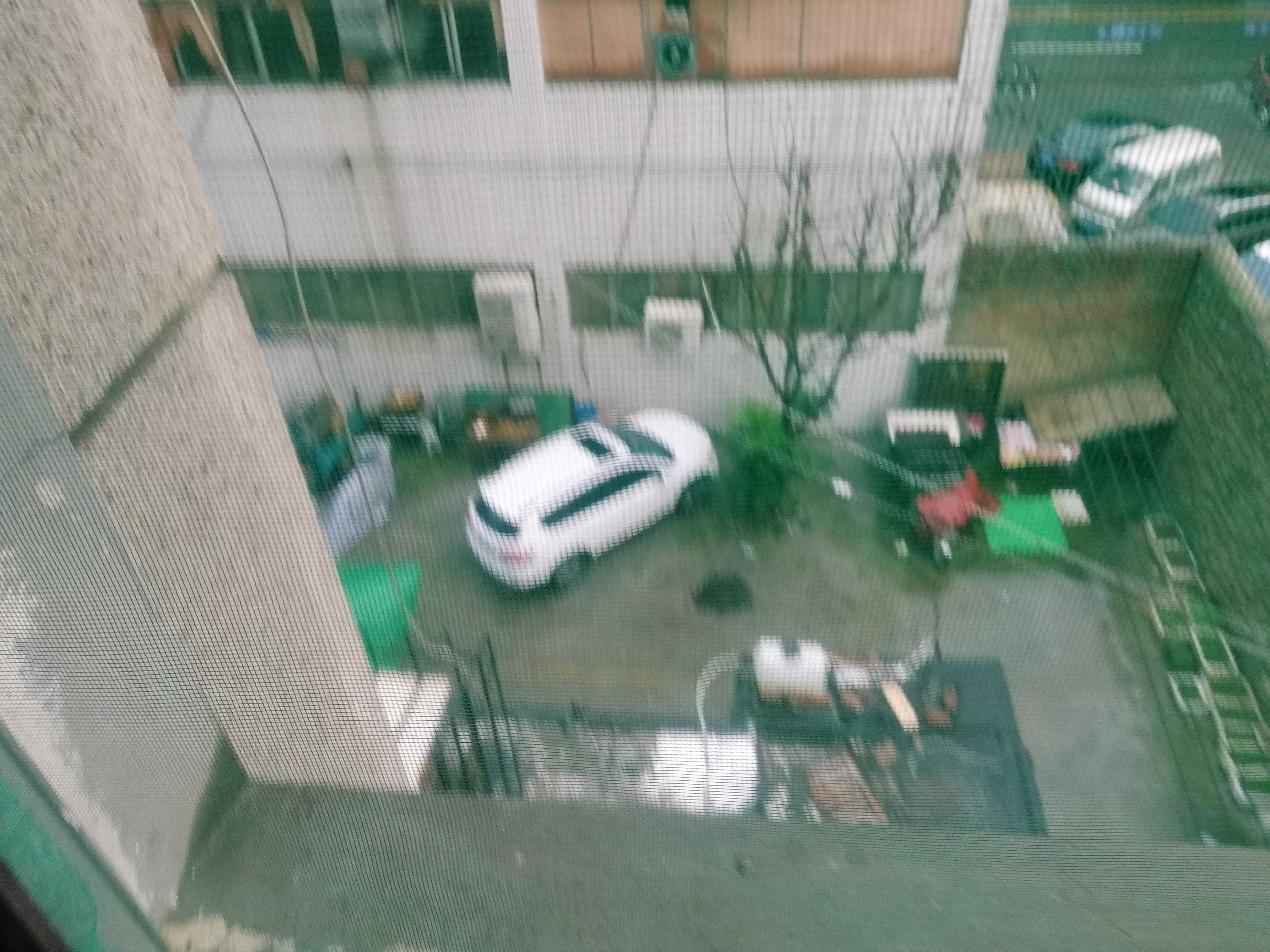 下午一点左右记者来到事发小区,在事发地看到一楼地上有坠落的空调外机,事发楼层为四楼。