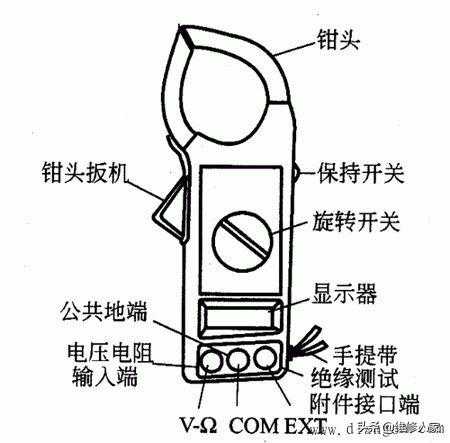 钳形电流表由电流互感器和表头组成,在使用时,一般将钳形电流表串接在被测电路中。当捏紧电流互感器的扳手时,铁心张开,被测电流所通过的导线(不必断开导线)可穿过铁心张开的缺口,当放开电流互感器的扳手后铁心闭合。