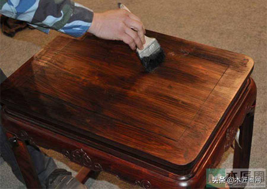 蜡要使用纯天然蜂蜡。先将其融化,点布于家具表面,然后施温匀蜡,待蜡在家具表面形成蜡膜后,在使用蜡起子,对家具进行起蜡,不同位置使用不同的样制工具。起蜡完成后用蜡布进行赶蜡,以使蜡质均匀,在使用蜡刷子进行抖蜡抛光,抛光后家具的木质及包浆会用极好的润泽和光泽。