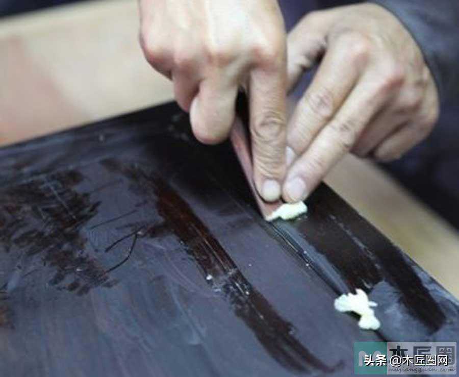 做漆面并不是简单地刷漆,而是尽可能保留原有漆面,大多数清水木色的古旧民间家具擦蜡即可,这是古旧民间家具修复工艺中的独特之处。也有需要重新罩漆的,一般情况下,头道漆后,要再上四到五道面漆,上两次色,揩漆和复漆一共需要八至十道,木质好的上面漆和复漆的道数可适当减少。漆膜同样需要打磨,效果最好的是使用人的头发反复摩擦。漆面打磨的总体要求是不留死角,不留油污,色泽均匀一致。