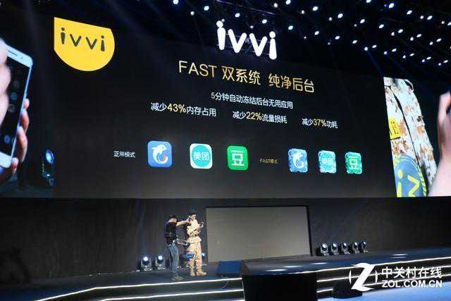 另外ivvii3配备4GB运存,保证系统本身的流畅,在大运存的基础上,ivvi开发了Fast双系统,拥有纯净后台,5分钟冻结后台无用APP,减少43%内存占用,关键还减少了足足37%的功耗。