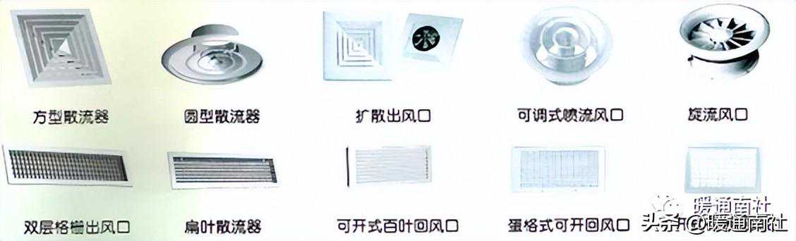 (3)风口:风口有送风口、回风口、新风口之分,其型式与构造多种多样。