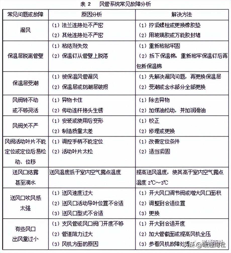 风管系统常见故障及维护维修方法: