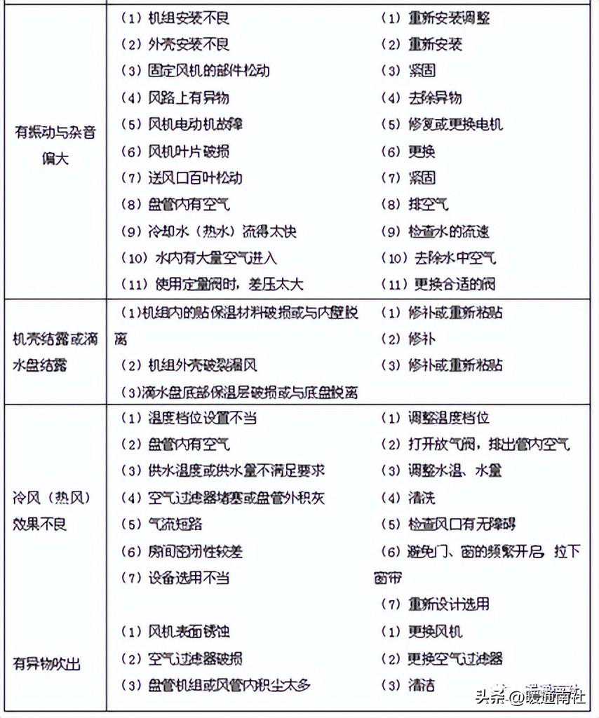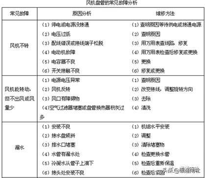 二、风机盘管的常见故障及维修方法