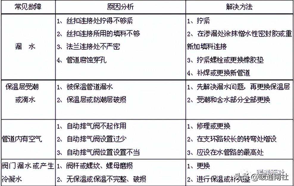 水管系统常见故障分析: