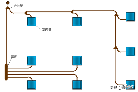冷媒管采用铜管,分为气管和液管,通过灵活的布置使室外机与室内机相连接。