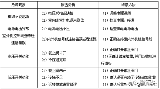 多联机空调运行中常见故障及维修方法: