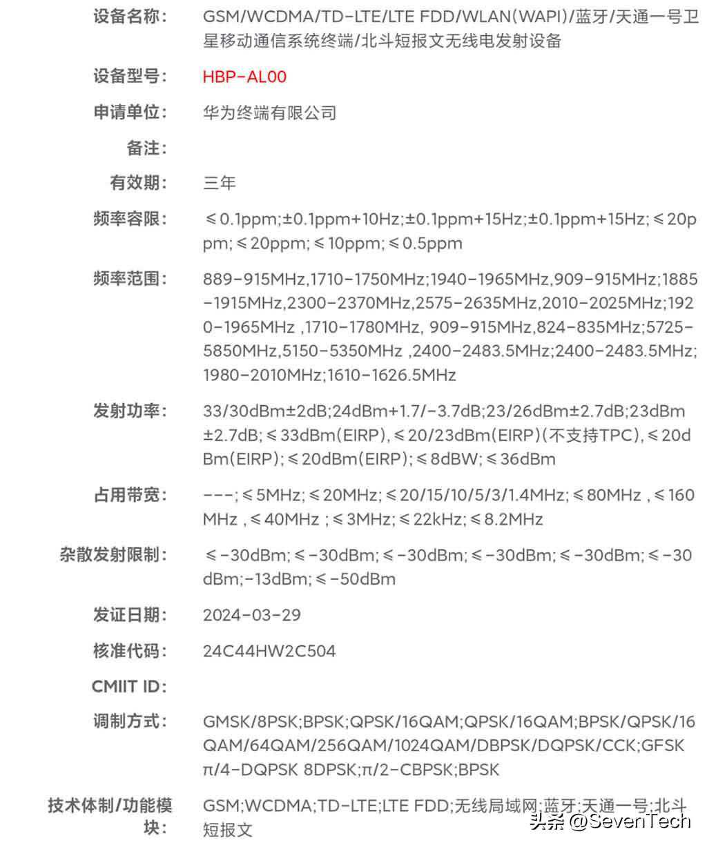 进一步的细节显示,其中两款华为手机(HBN/HBP)支持北斗卫星短信和天通卫星通话功能。而ADY-AL10智能手机型号只具有北斗卫星信息能力。由于华为在网络认证中总共列出了三款新手机,这些手机可能来自P70系列。