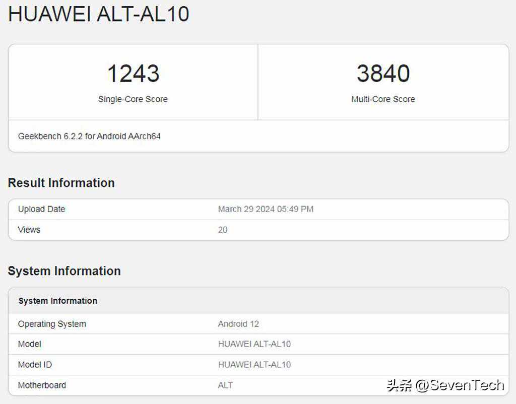 值得注意的是,AL10和AL80型号的华为设备似乎运行的是与Mate60Pro相同的麒麟9000S芯片组,具有12个逻辑核结构。他们也有类似的Geekbench6得分范围。
