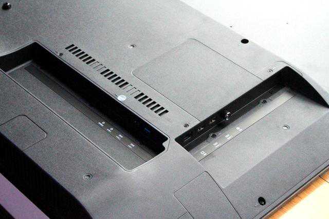 看看电视的背面和侧面的接口,背面两侧分别有两个8W的喇叭。再说下接口,分别拥有2个接口,2个接口,1个AV输入接口、1个网络接口、一个RF接口和一个音频输出接口(耳机/同轴二合一)。客观的说还是比较齐全的,同时接PS4Pro和Switch都没问题。