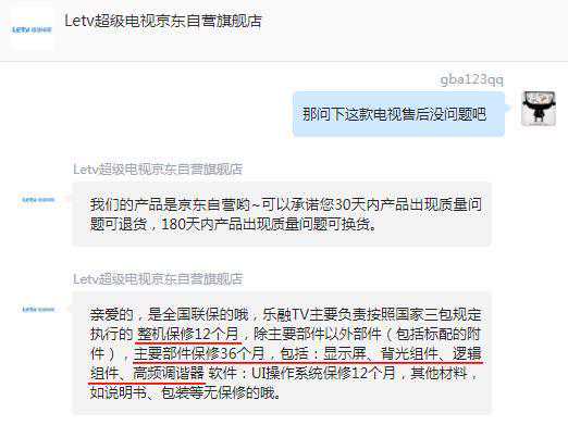 如今乐融Letv超级电视的主体运营公司变成了乐融,跟老贾彻底断绝了关系,再加上我咨询了售后,现在乐融TV整机是保修12个月,显示屏等主要部件保修36个月(3年),因此作为消费者不用太担心。