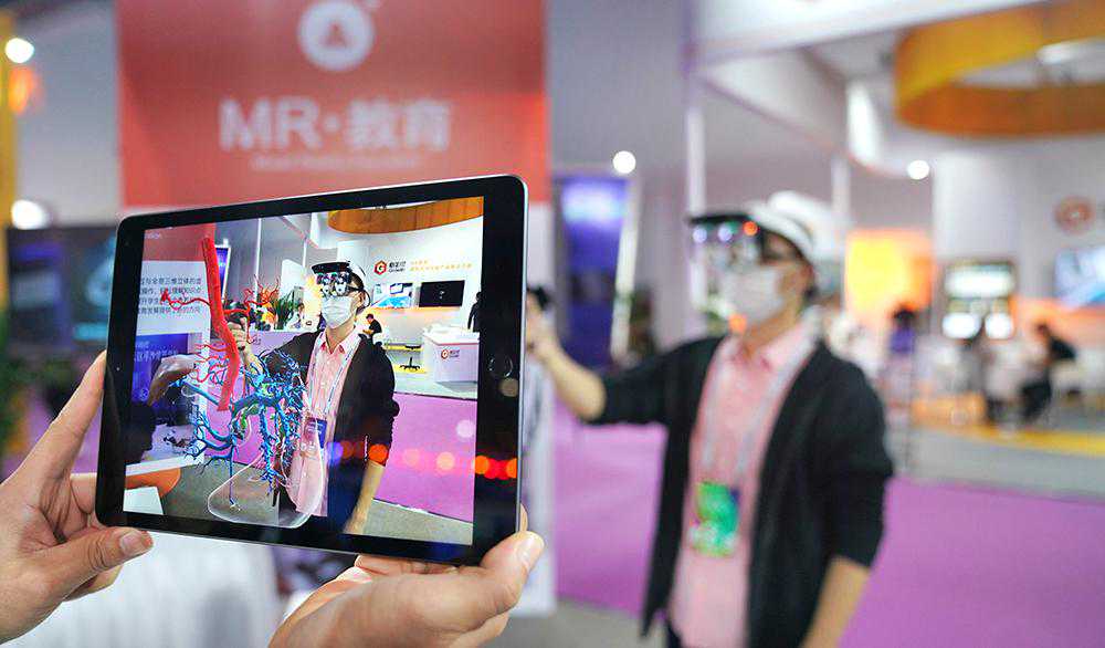 10月19日,观众在2020世界VR产业大会VR/AR产品和应用展览会上体验“MR交互系统”在医务教学上的应用。该系统可以更加直观地分析病灶和预演手术流程胡晨欢摄/本刊