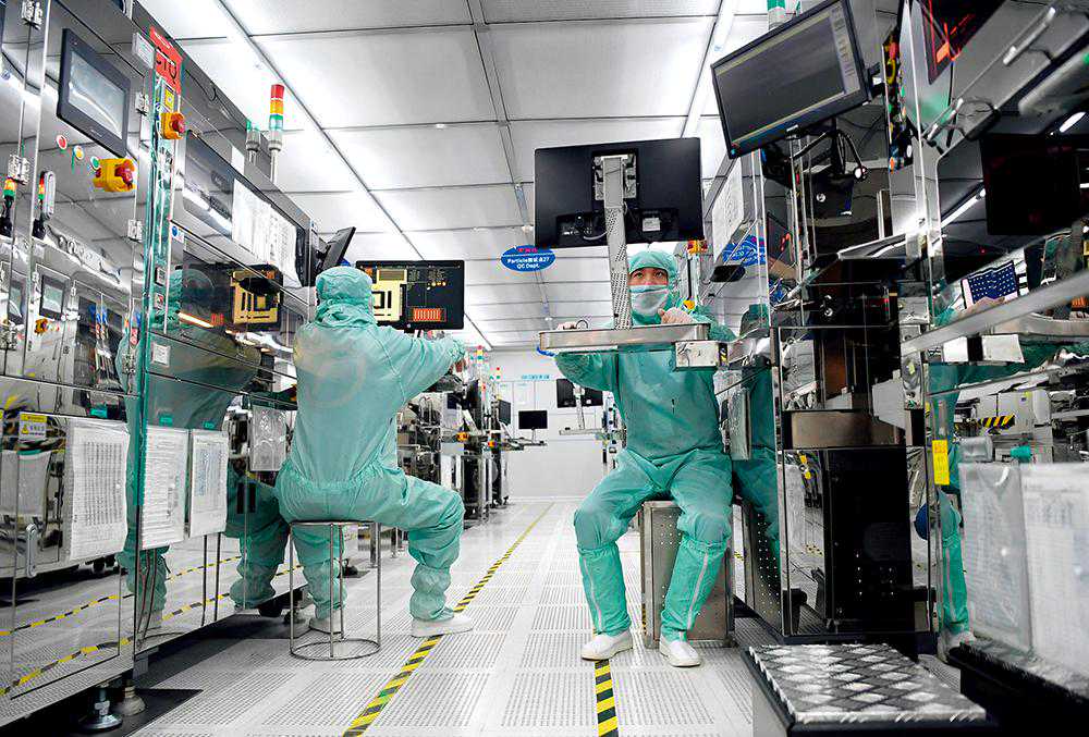 2月14日,南昌同兴达精密光电有限公司的精密生产车间,工人们戴着口罩生产电子元件万象摄/本刊