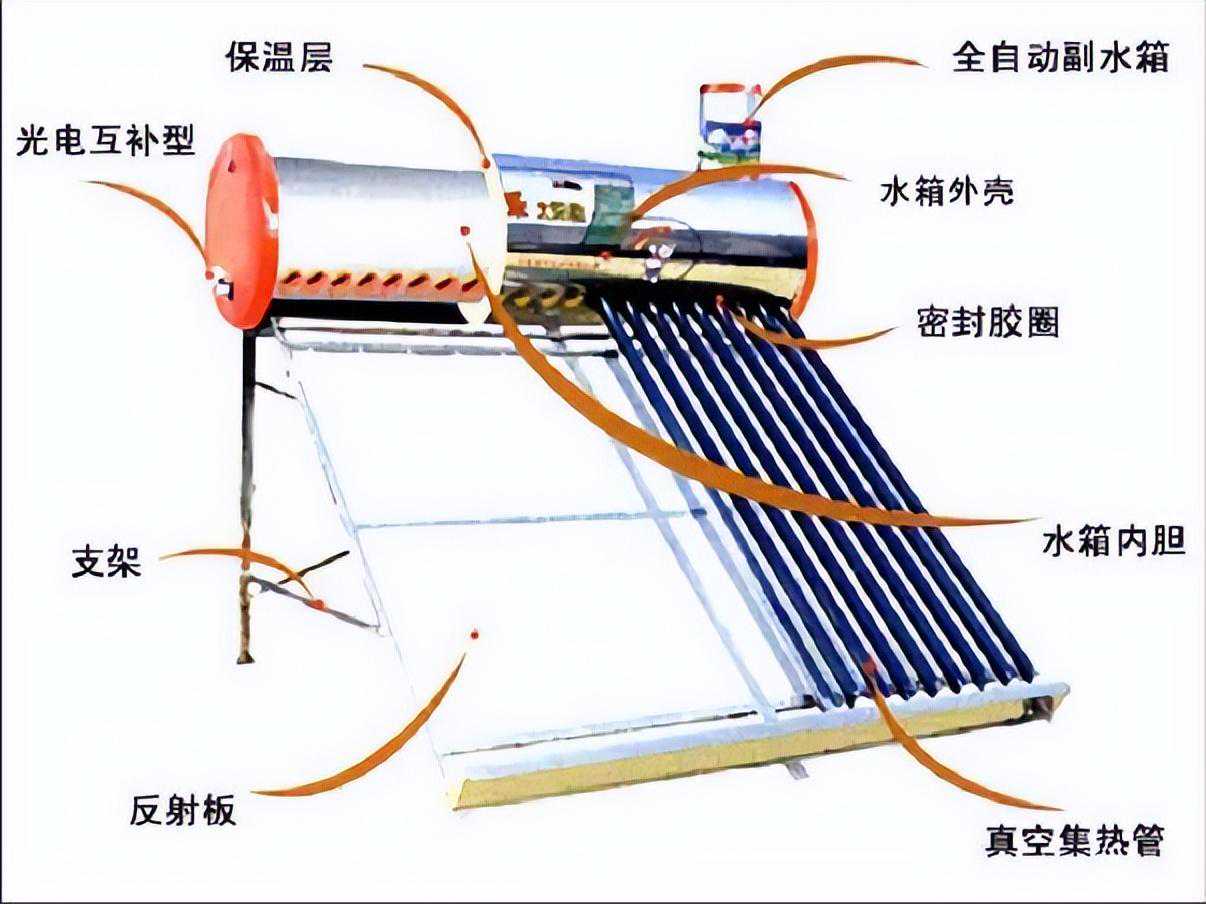 太阳能热水器一般由集热器、贮热装置、循环管路、辅助装置及淋浴喷头等部分组成。