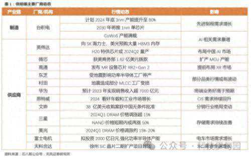 头部企业订单及库存情况:从企业订单看,工业/通信相关厂商需求低迷,消费类需求上升,汽车/AI等需求维持快速增长。主要厂商库存去化接近尾声,需求逐渐回升