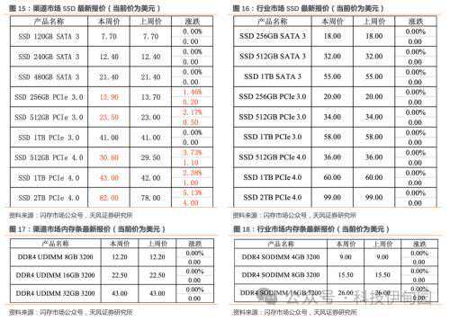 渠道市场方面,NAND资源成本高企,渠道倒挂行情持续,市场缓慢接受涨价,本周渠道PCIeSSD价格小幅上调,渠道内存价格持平。行业市场方面,近期行业市场未见明显变化,行业SSD及内存价格维持不变。