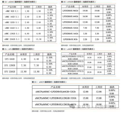 上游资源方面,年终结算及新年初始,上游资源价格持平,本周NANDFlashWafer和DDR价格暂维持不变。