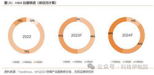HBM迭代进程:2024年HBM2、HBM2e和3e的市场份额会发生比较明显的改变。2023上半年主流还是HBM2e,但是因为H100的问世,下半年HBM3就成为市场主流,很快2024年就会进行到HBM3e,因为它堆叠的层数更高,所以平均单价一定要比现在再高20%-30%以上,所以它对产值的贡献会更明显。