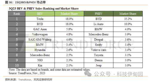 根据Trforce数据,新能源汽车预计2024年成长率为32%,总销售量预计将达到1,700万台。比亚迪在插电式混合动力车市场中保持领先地位,积极拓展品牌和产品组合。理想汽车凭借中国大型SUV需求的成长,取得第二名(10%),实现了第一季销售超过10万辆的里程碑。