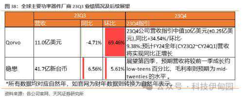 国际功率大厂分部门营收受到下游需求分化明显,国际大厂Wolfspeed预期23Q4营收环比微增,部分中高端产品或标准组件逐步面临价格压力。