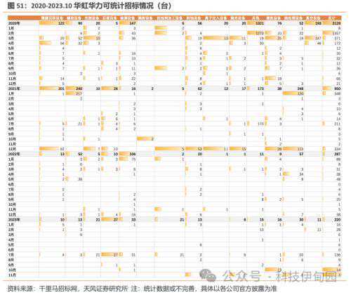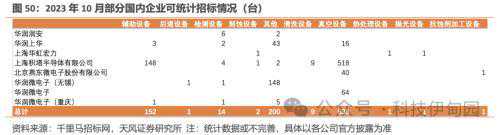 2020年-2023年11月,华虹华力可统计招标设备共3588台,包括246台薄膜沉积设备、395台辅助设备、56台光刻设备、69台后道设备、303台检测设备、152台刻蚀设备、388台热处理设备等。
