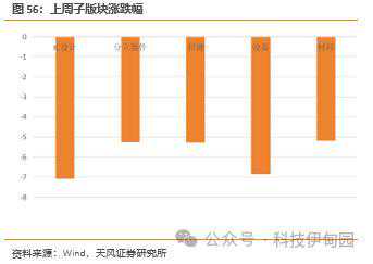 半导体各细分板块均呈现下跌态势,其中IC设计板块跌幅最大。半导体细分板块中,封测板块上周下跌5.29%,IC设计板块上周下跌7.10%,半导体材料板块上周下跌5.19%,分立器件板块上周下跌5.26%,半导体设备板块上周下跌6.85%。