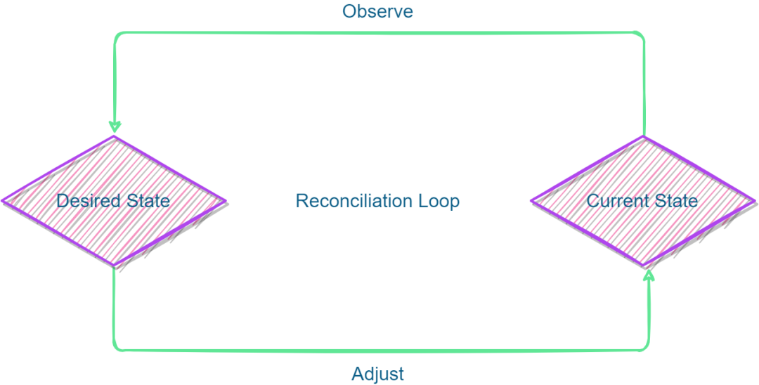 这里对Kubernetes的控制器模式做个简要说明。Kubernetes通过声明式API来定义对象,各个控制器负责实时查看对应对象的状态,确保达到定义的期望状态。这就是Kubernetes的控制器模式。