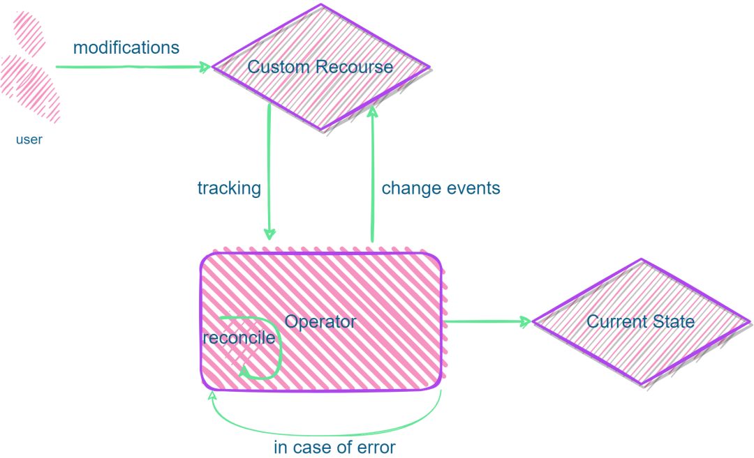 所以我们在声明完成CRD之后,也需要创建一个控制器,即Operator,来完成对应的控制逻辑。在了解了Operator的概念和控制器模式后,我们来看看Operator是如何工作的。