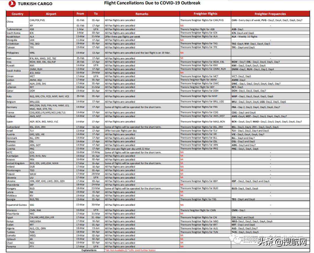 ➜土耳其航空:暂停往来于上海、广州、北京、西安航班直至3月31日。