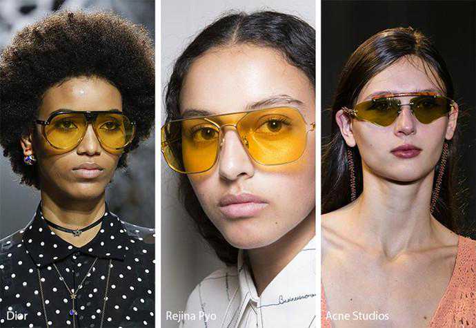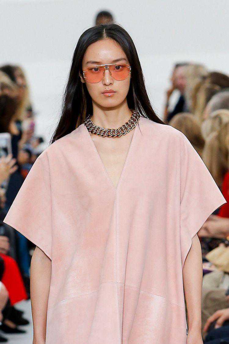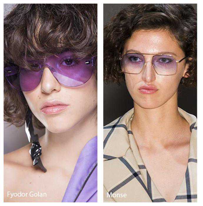 紫色镜片也出现在2018春夏各大秀场上,向来优雅的名媛Oliver也有一只,半透明的紫色搭配什么颜色衣物都没问题。