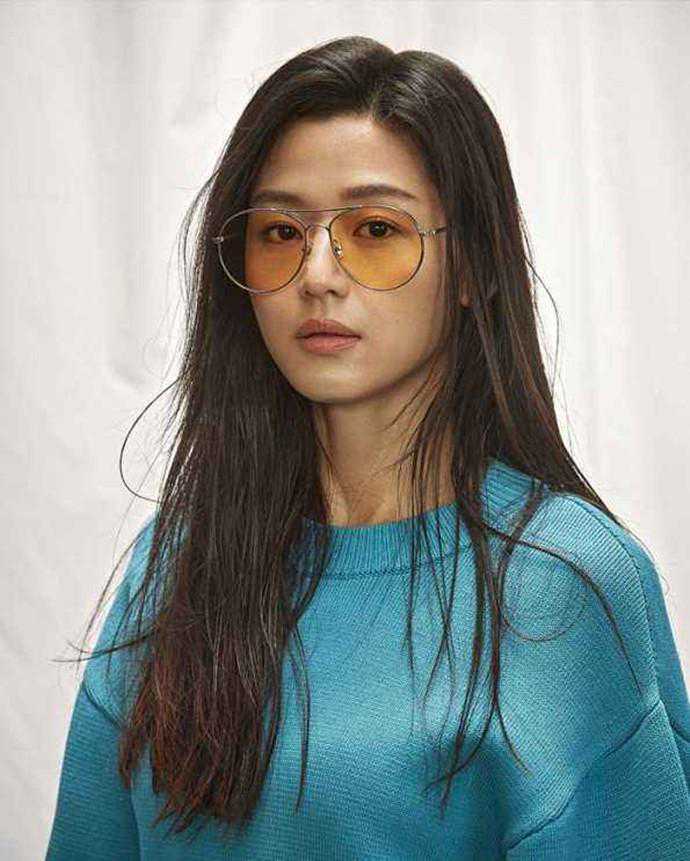 明亮的黄色透明片绝对是时髦精必备,尤其对于喜欢黑白灰基础色的姑娘来说,黄色片非常点睛。比如全智贤这幅就是风格十足。