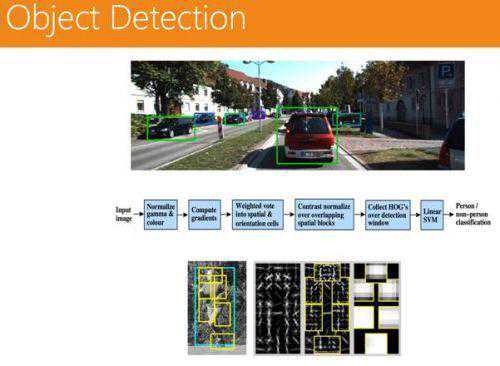 这也是无人驾驶中一个比较重要的技术。如何预测行人下一个动作、怎么去跟踪这个行人,也有一系列问题。里面用到的是马尔可夫链的解决方案,这个技术叫做MDP,跟踪一个人,随时跟踪其下一个动作,预测其下一个动作。以上其实都是一些传统的感知方法,而这些年随着深度学习的不断进步,应用也非常广泛。