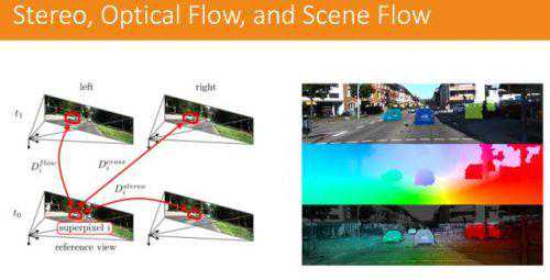 光流也可以利用深度学习的模型来做,把左右两图用同样的模型来提取特征,经过计算就能得出一个深度的信息。但是这个方式的计算量非常大。对感知有兴趣的同学可以学习一下OPENCV以及基本的卷积网络识别例子,比如基于LENET的数字识别。