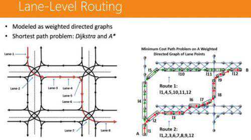因为每条路都有不同的车道,那我们把车道标出不同的节点,不同的节点连接在一起,就变成了一条车道。通过某种方式(Dijkstra和A*)找到最短车道,就能得到最优解。