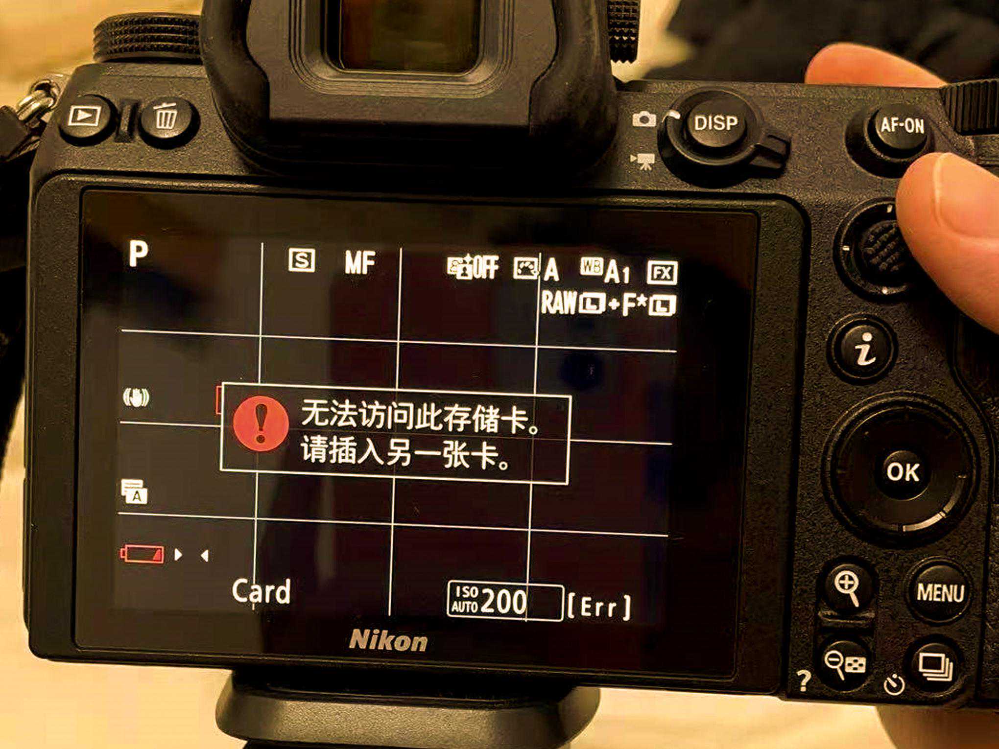 强行盖住尼康Z6的储存卡仓门,也无法正常识别XQD卡。
